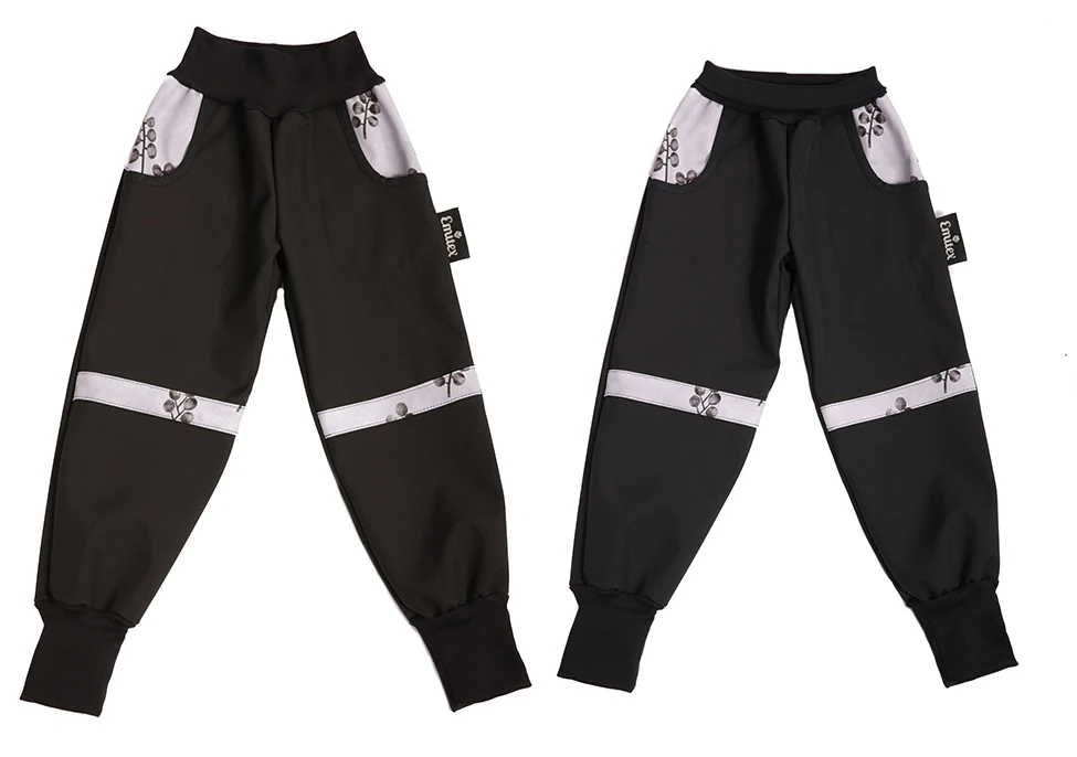 Kalhoty jsou v pase a na nohavicích vybaveny elastickými, pletenými rukávy, které umožňují regulovat délku kalhot. To zajistí kalhotám delší využití.