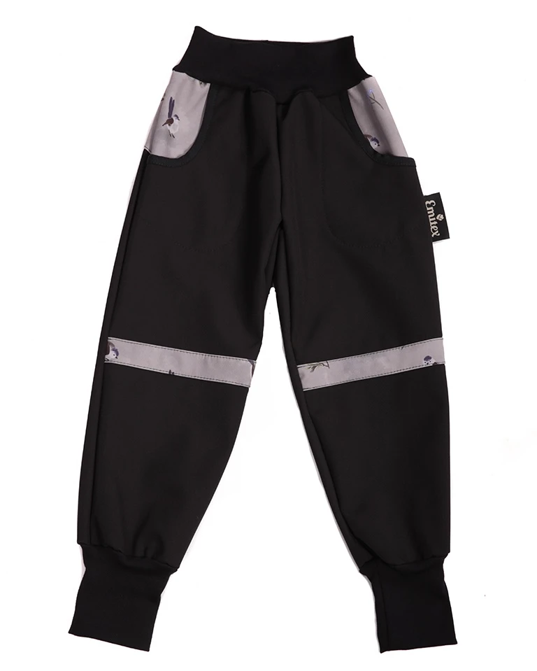 Kalhoty jsou v pase a na nohavicích vybaveny elastickými, pletenými rukávy, které umožňují regulovat délku kalhot. To zajistí kalhotám delší využití.