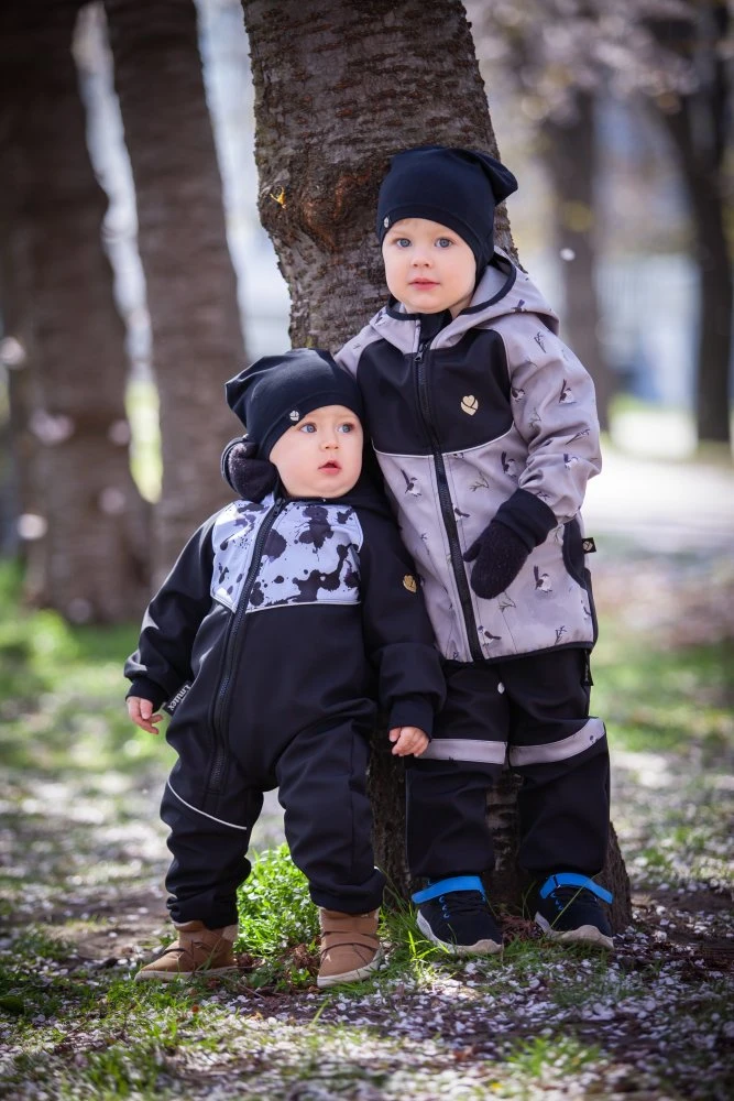 Polyester 100% Softshell v třívrstvém provedení, náplet je z 95% bavlna a 5% lycra.