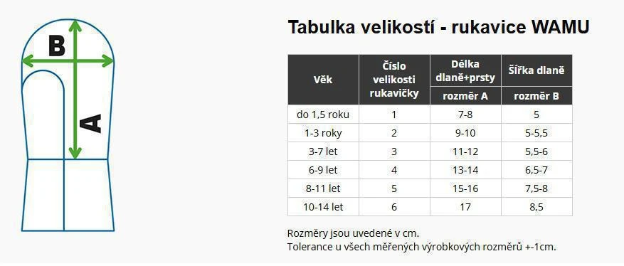 | Velikost rukavic | 1 - 2 roky / 3 - 5 let |