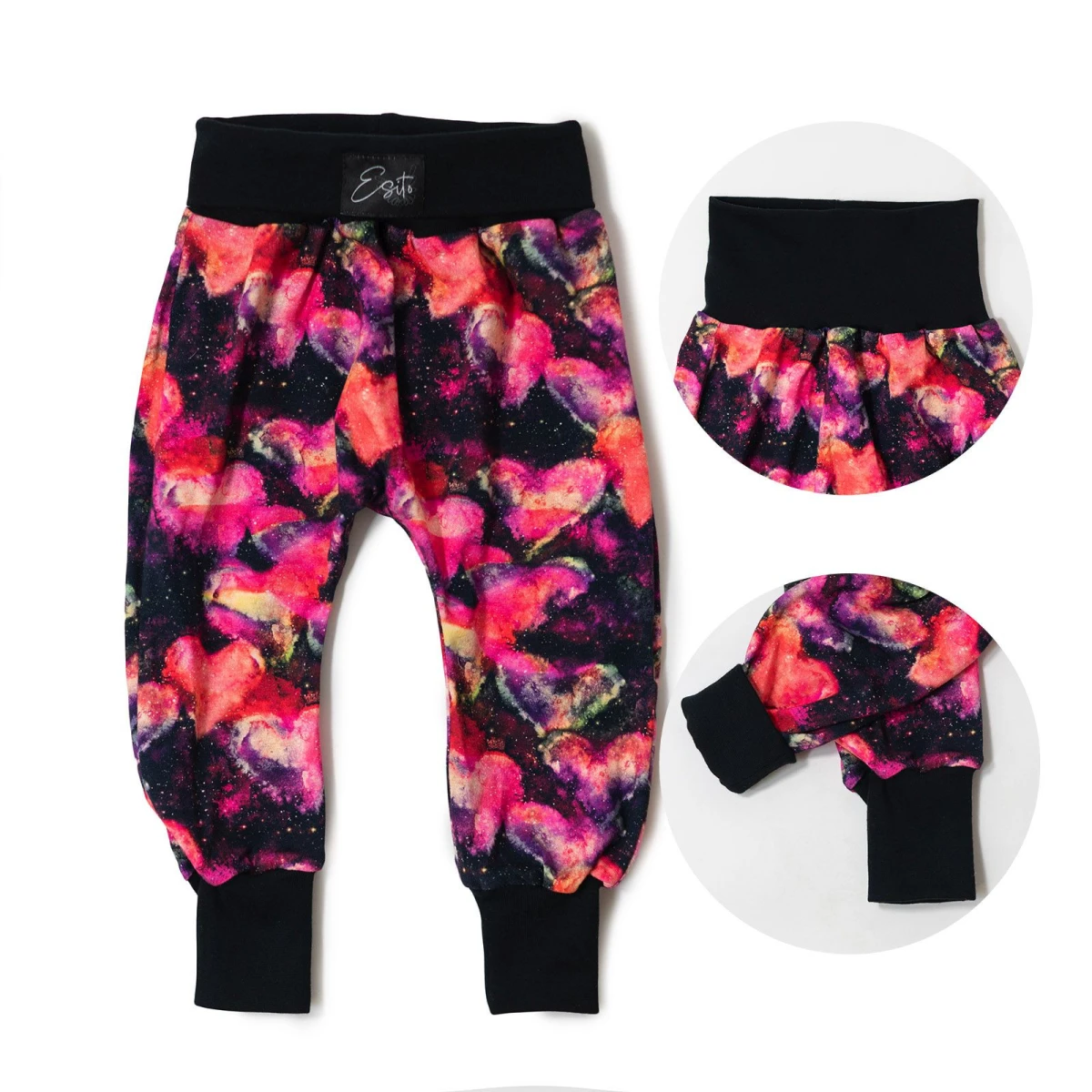 Dětské tepláky s vysokým pasem Duhová srdce černá Esito