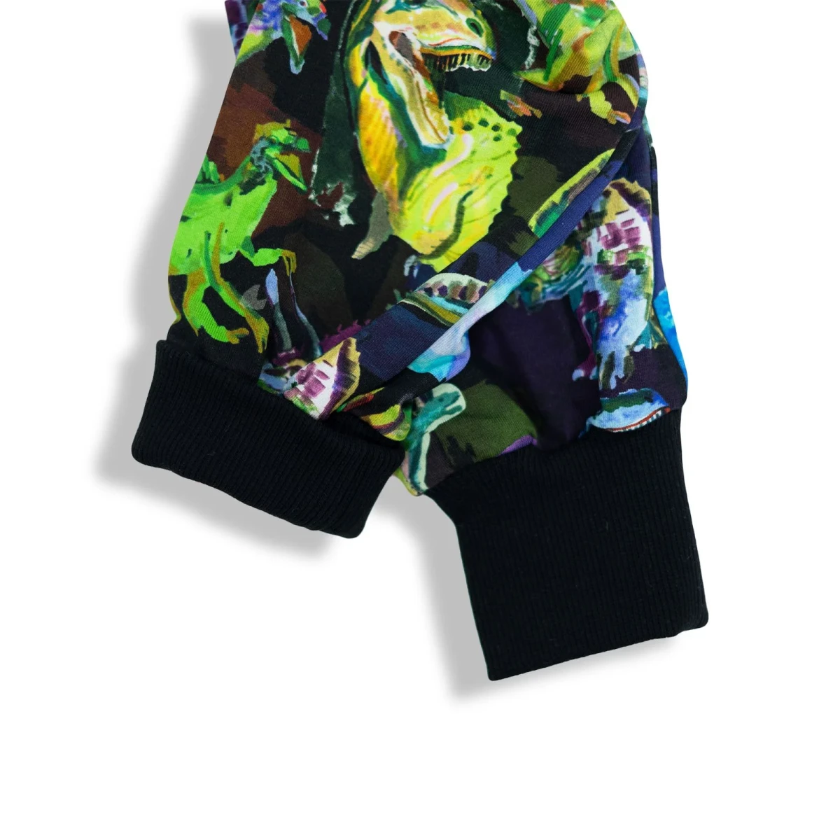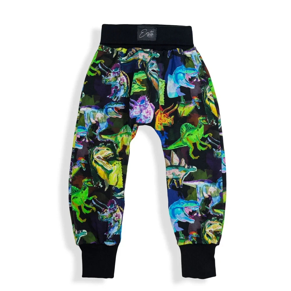 Dětské tepláky s vysokým pasem Hraví dinosauři - černé Esito