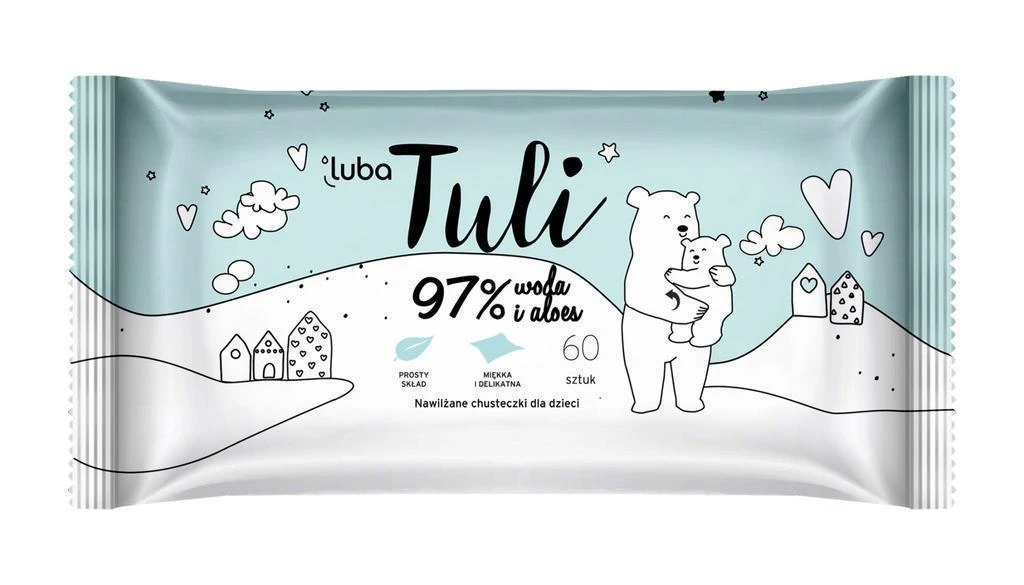 Dětské vlhčené ubrousky Tuli s 97 % vody a aloe vera 60 ks Luba