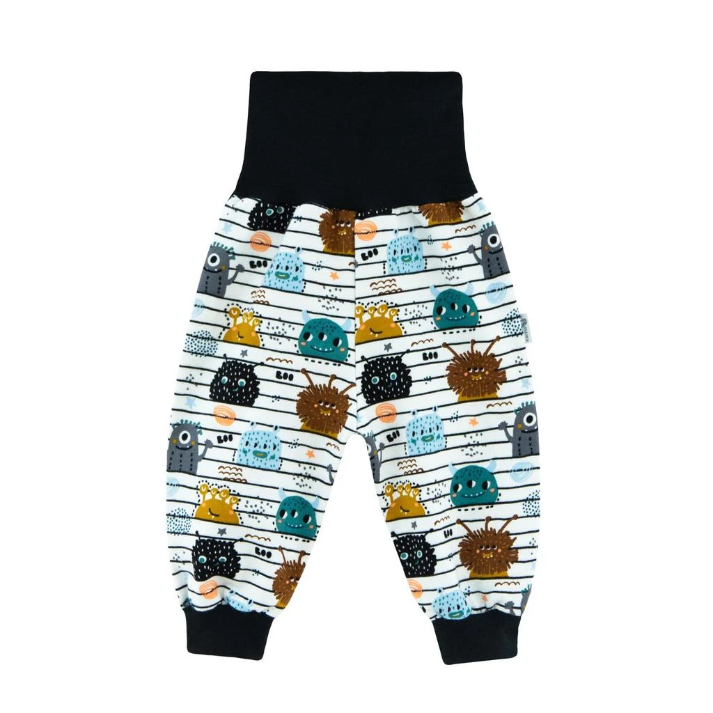 Zateplené kojenecké kalhoty z kolekce Příšerky. Počesaná zateplená bavlna v BIO kvalitě s certifikací GOTS a kvalitním digitálním potiskem. Ideální barevné provedení vhodné pro kluky i holky.