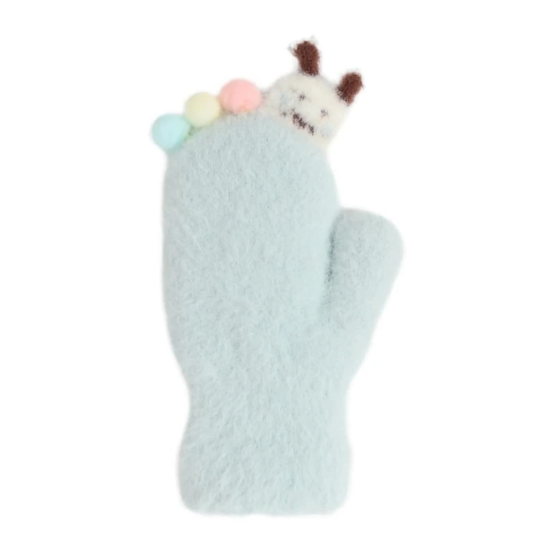 Dětské zimní huňaté palčáky s lamou a bambulkami 2 - 3 roky