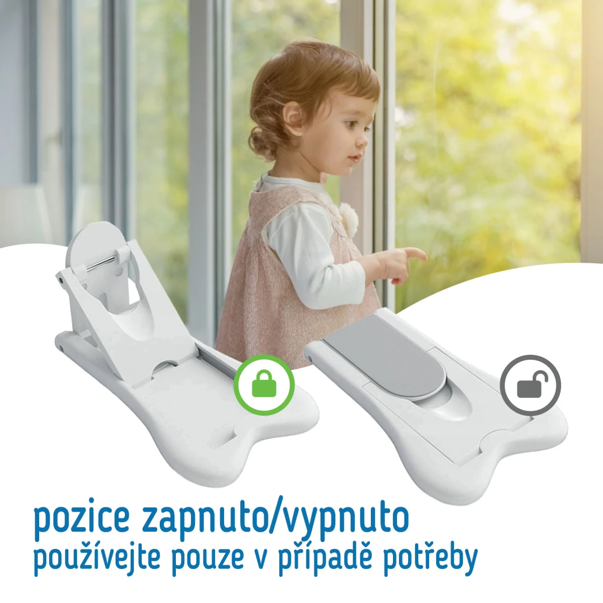DOPLŇUJÍCÍ INFORMACE: Vždy postupujte podle přiložených pokynů. Pomůcka je určena pro domácí použití. Nepoužívejte výrobek jiným způsobem, než pro jaký byl určen a jaký je popsán v přiložených pokynech. Výrobce neodpovídá za škody vzniklé v důsledku použití výrobku v rozporu s jeho určením. Upozorňujeme, že některé děti mohou ochranu odstranit. Z tohoto důvodu doporučujeme pravidelně kontrolovat stav bezpečnostní pomůcky.