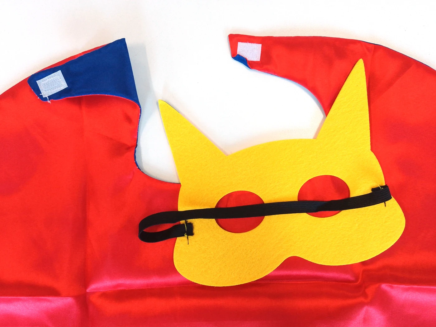 Plášť je vyroben z měkkého, lehkého saténu s lesklým povrchem, který vypadá skvěle a zároveň je pohodlný na nošení. Vnitřní strana má kontrastní modrou barvu, která při pohybu dodává kostýmu atraktivní vzhled. Díky zapínání na suchý zip si plášť snadno oblékne i malé dítě bez pomoci dospělých.