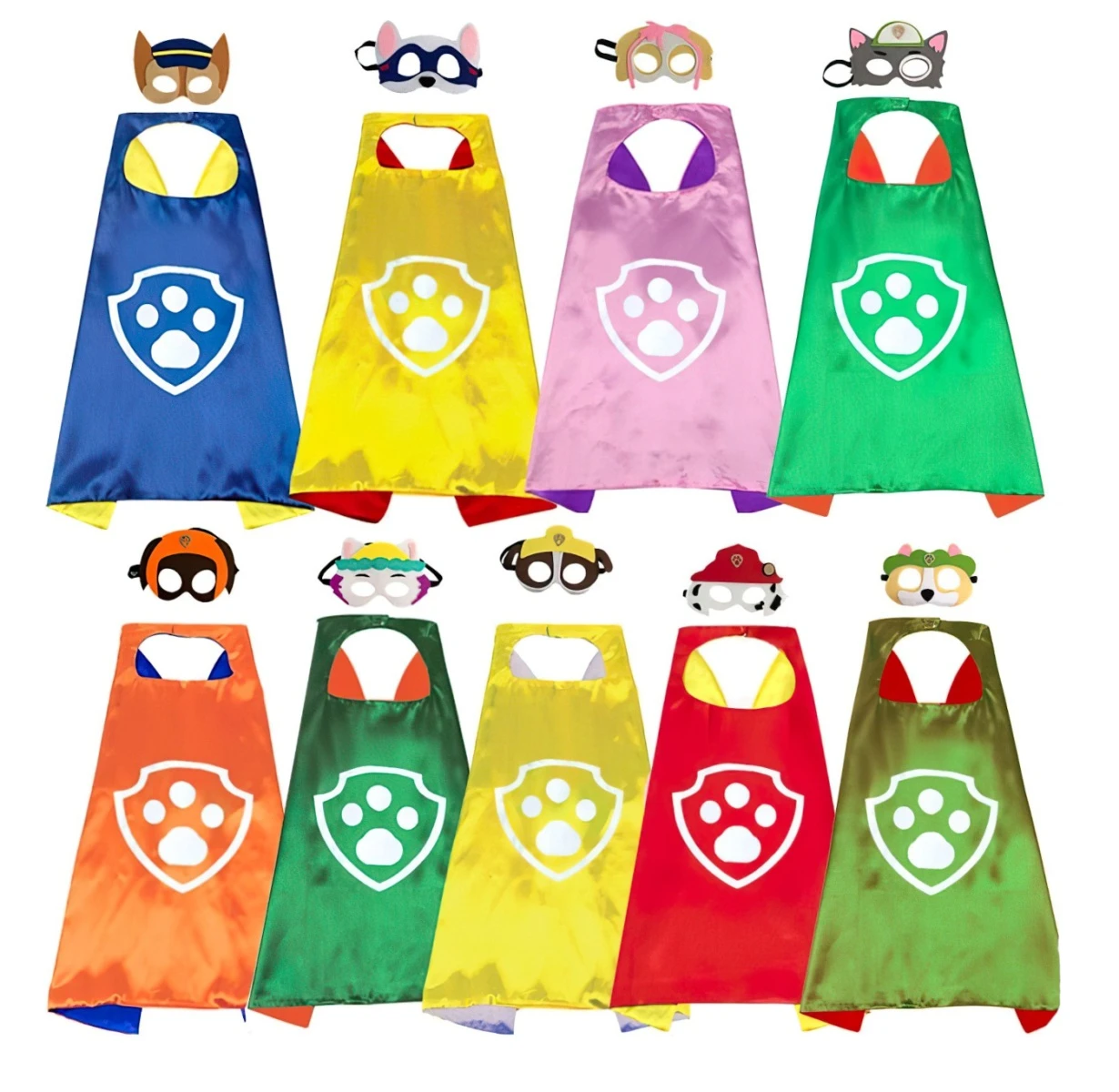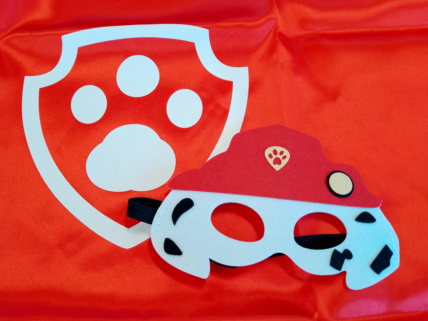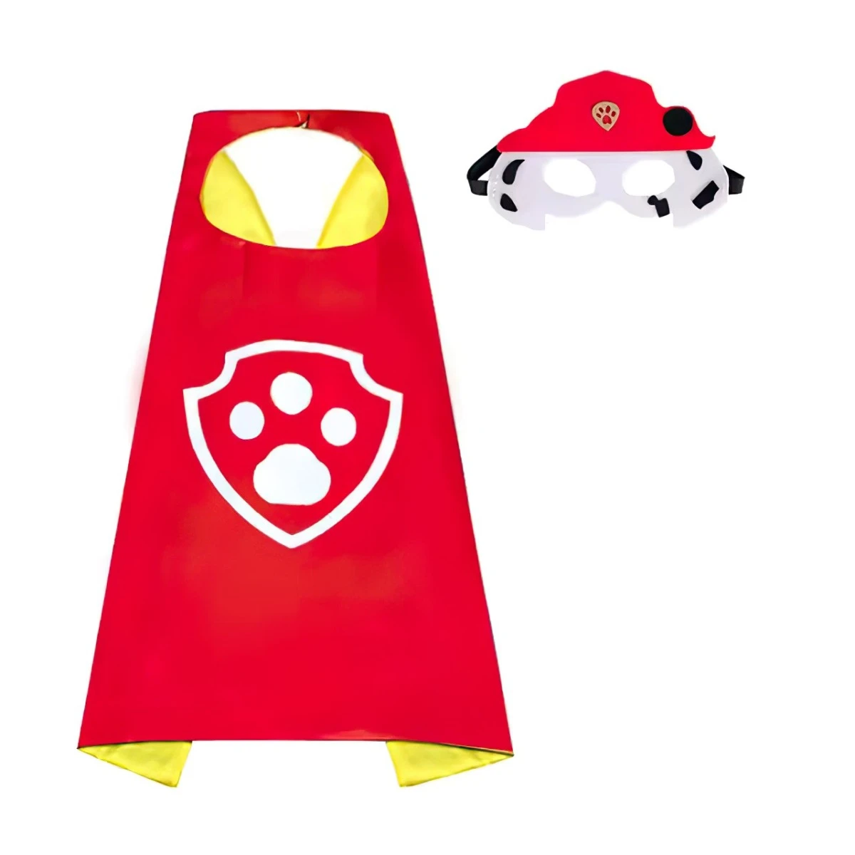 Sada obsahuje červený plášť s logem Tlapkové patroly a stylovou masku připomínající hasičskou čepici a bílé chloupky Marshalla – dalmatina, který je vždy připraven pomáhat.