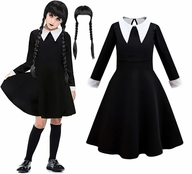Tento kostým je skvělou volbou pro dětské karnevaly, Halloween, nebo jakoukoli jinou událost. Kostým je jednoduchý, lehký, v klasickém černo-bílém provedení s límečkem. Díky kvalitnímu zpracování a pohodlným materiálům bude vaše dítě v tomto kostýmu vypadat a cítit se skvěle. Za originální proměnu do jedné z nejznámějších postav z kultovní Adamsovy rodiny - Wednesday, jistě dítě získá spoustu chvály.