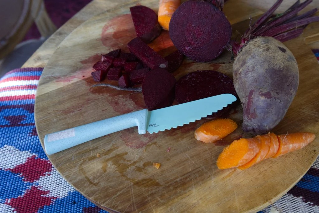 Je navržen pro děti od 3 let, které už jsou dostatečně zručné pro práci s nožem a jsou připravené na větší přesnost, kontrolu a samostatnost. Čepel je funkční a efektivní pro krájení běžných surovin, přesto je nůž navržen s důrazem na bezpečné používání – vždy však pod dohledem dospělé osoby.