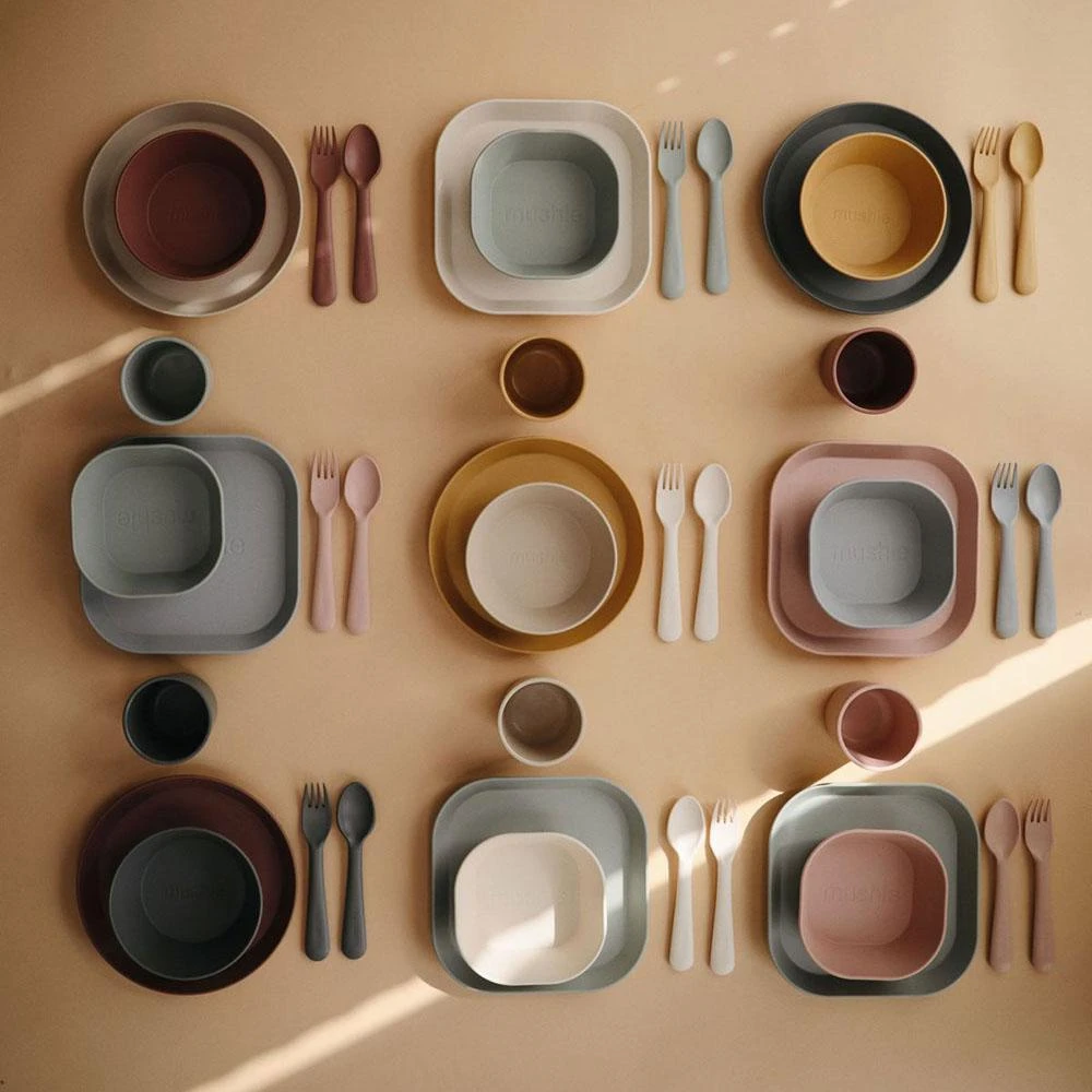 - Misky, talířky, příbory a lžičky Mushie pro holky i kluky - unisex