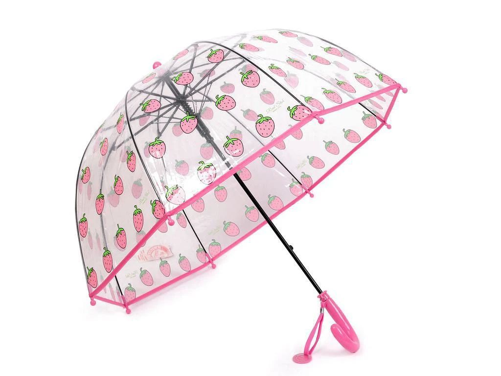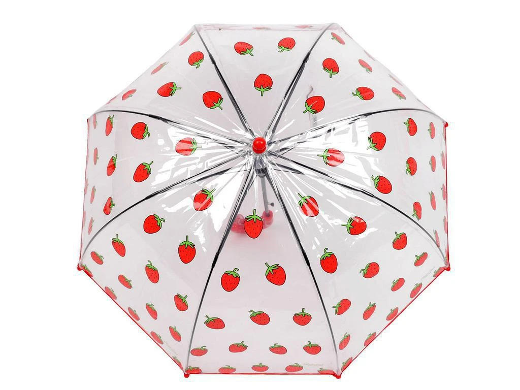 Konce lamel jsou zakončené plastovými kuličkami - zmenšují riziko poranění. Deštník má klasické zapínání na patentku.