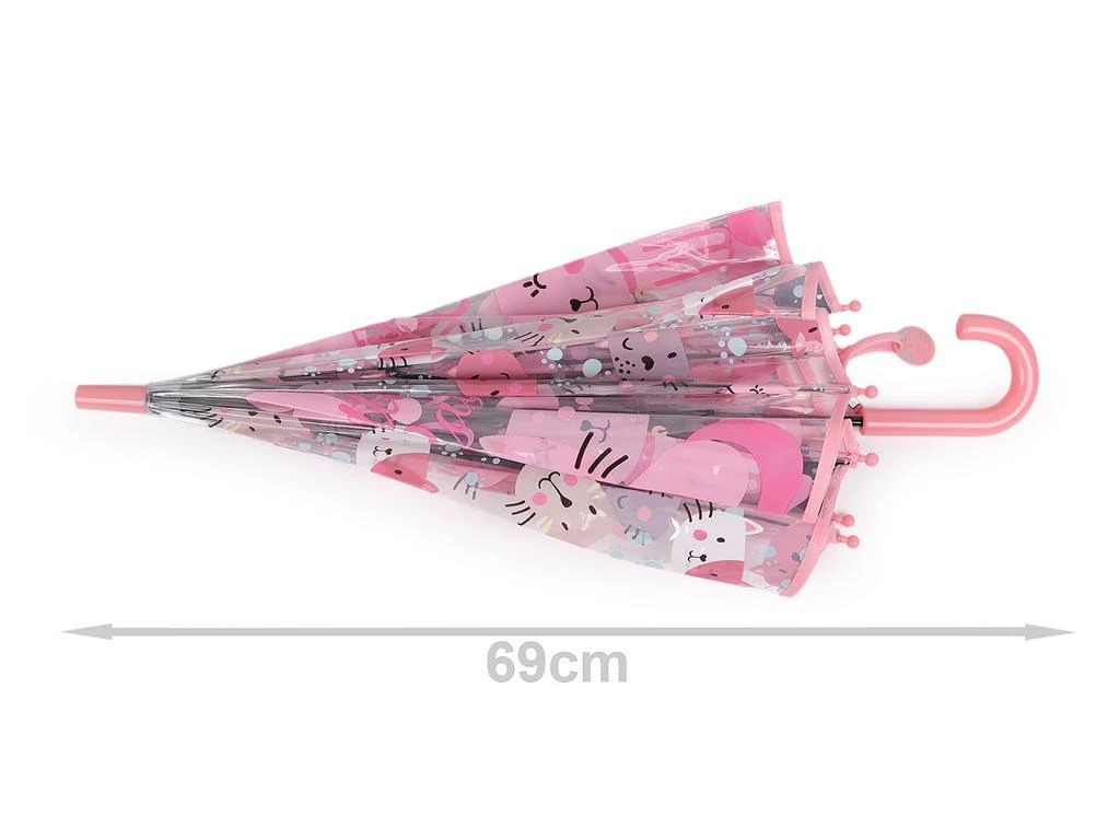 Konce lamel jsou zakončené plastovými kuličkami - zmenšují riziko poranění. Deštník má klasické zapínání na patentku.