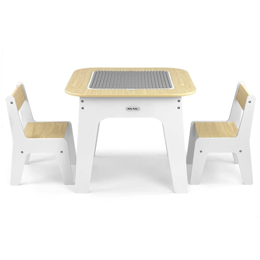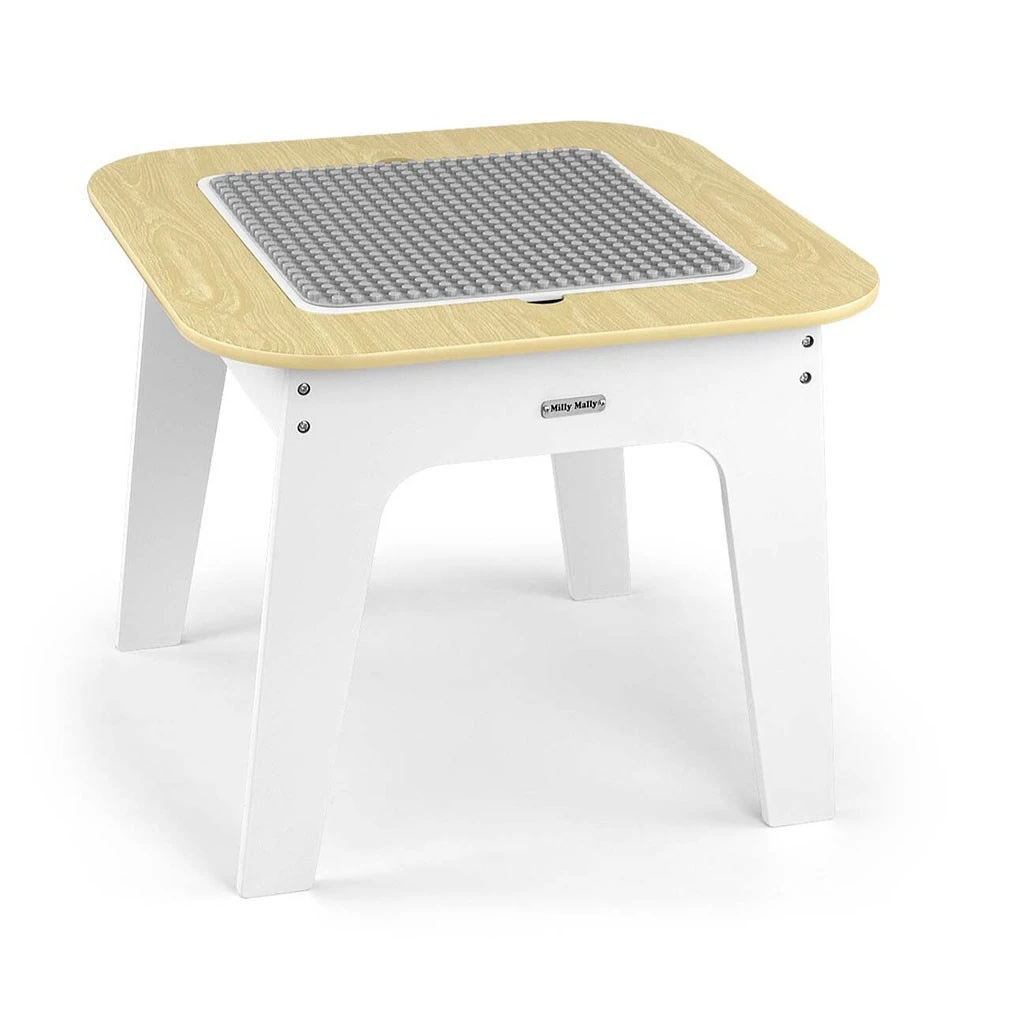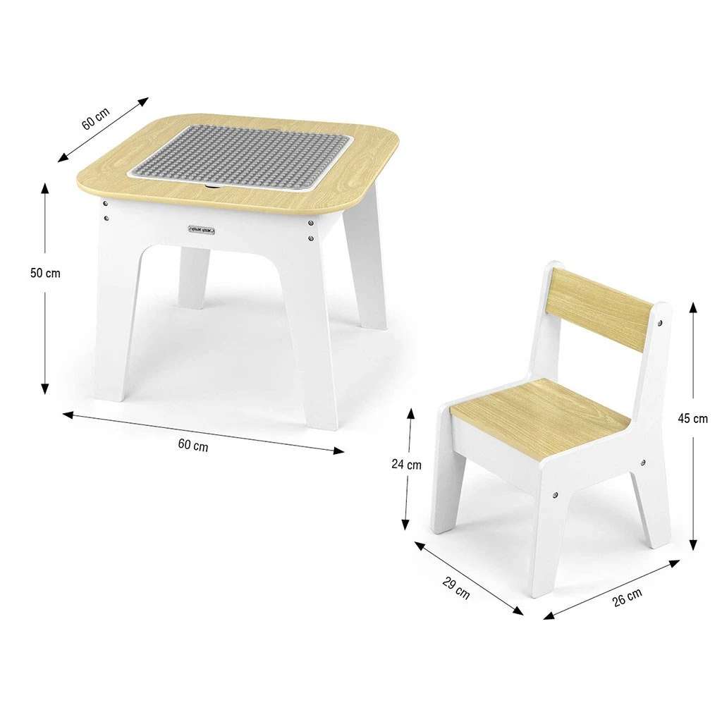 Set Olaf Blocks vyniká jedinečnou deskou stolu – jedna strana je přizpůsobena pro stavební kostky, což z něj činí ideální základnu pro stavění. Druhá strana je hladká a perfektní pro kreslení, psaní nebo jiné výtvarné aktivity. Deska je odnímatelná a pod ní se nachází prostorný úložný prostor, který usnadňuje ukládání hraček, kostek nebo výtvarných potřeb, což pomáhá udržovat pořádek.
