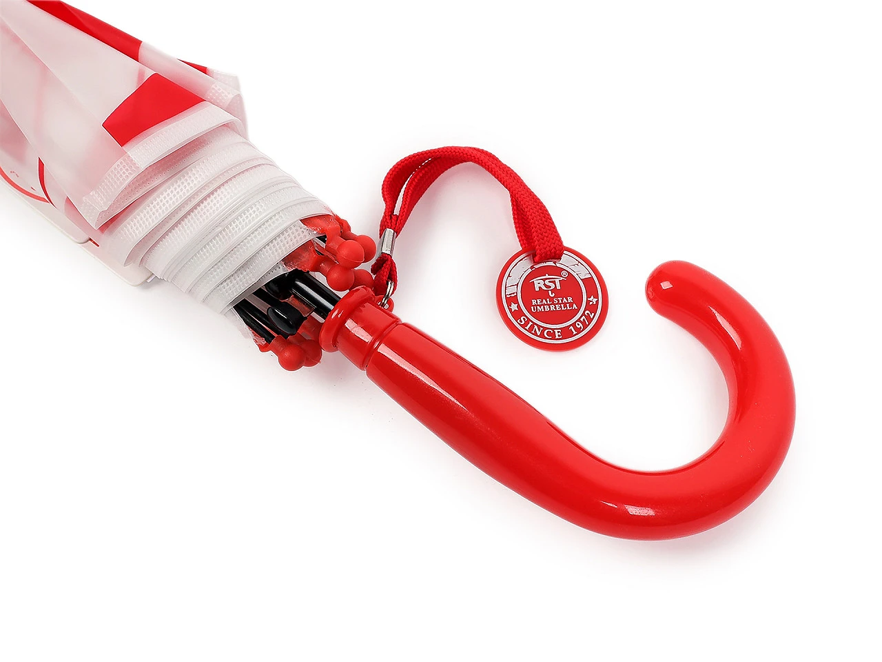 Je ideálním společníkem pro malé sportovní nadšence. Díky svému atraktivnímu designu, který připomíná fotbalový míč, si ho děti okamžitě oblíbí. Potah je průsvitný, na rukojeti má deštník visačku, na kterou můžete napsat jméno dítěte. Má klasickou tyč zakončenou pevnou rukojetí. Konstrukce deštníku je z pružných lamel a tvoří osm polí.
