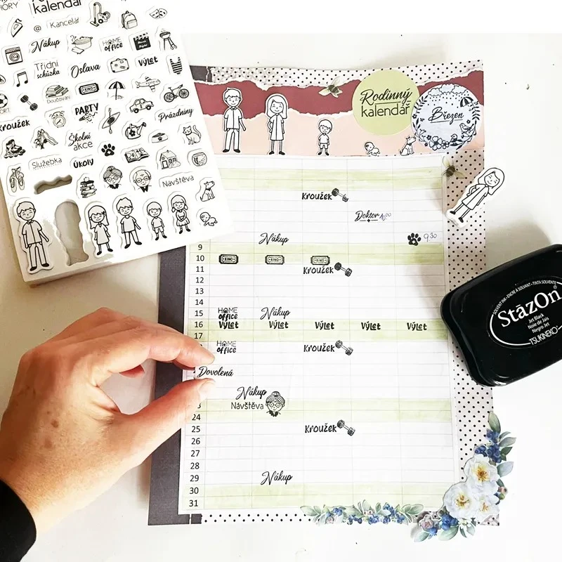 Diářová razítka Stampo Bullet Journal 67 ks - Rodinný kalendář Aladine