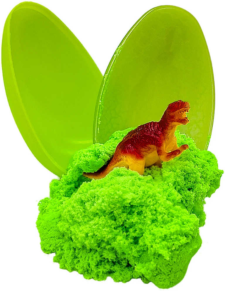 Uvnitř každého vejce se skrývá malé dinosauří dobrodružství – figurka dinosaura a kouzelný písek, se kterým si děti užijí spoustu tvořivé zábavy. Písek se snadno tvaruje, drží pohromadě a umožňuje vytvářet nejrůznější stavby, tvary i vlastní dinosvět.