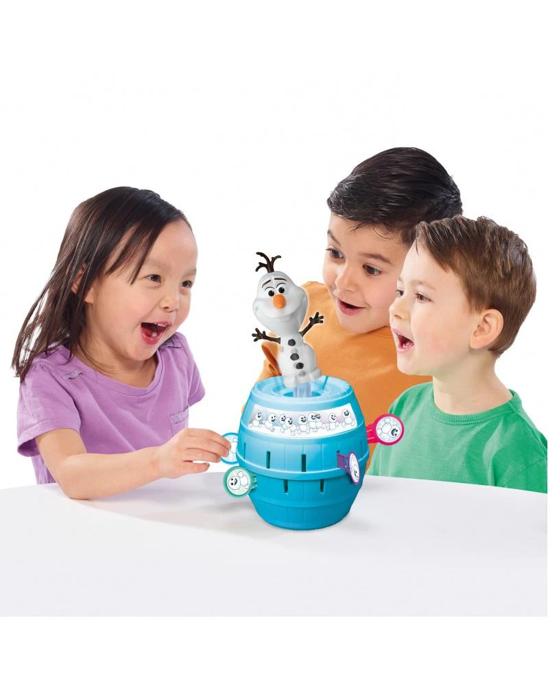 Zbrusu nová, akční a vysoce kvalitní akční hra s Olafem z Disney příběhu Frozen. Určitě se mohou zapojit všichni rodinní příslušníci. Aby byla hra při rozbalení kompletní, opatrně přilepte přiložené nálepky na určená místa. Olafa umístěte na sud a přitiskněte dolů do sudu. Pokaždé bude vykukovat jinak. V této hře se tyčky se sněhuláky zabodávají do sudu. Každý hráč si zvolí svou oblíbenou barvu zastrkovací tyčky se sněhulákem a bude doufat, že právě jemu Olaf nevyskočí. Musíte být ale opatrní, stačí jeden chybný krok a Olaf vyletí ven ze sudu!