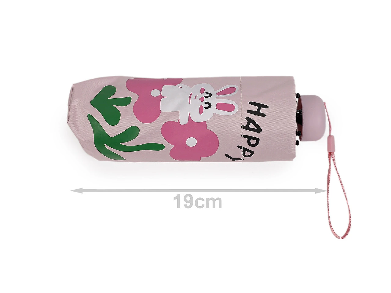 Délka složeného deštníku je 19 cm.