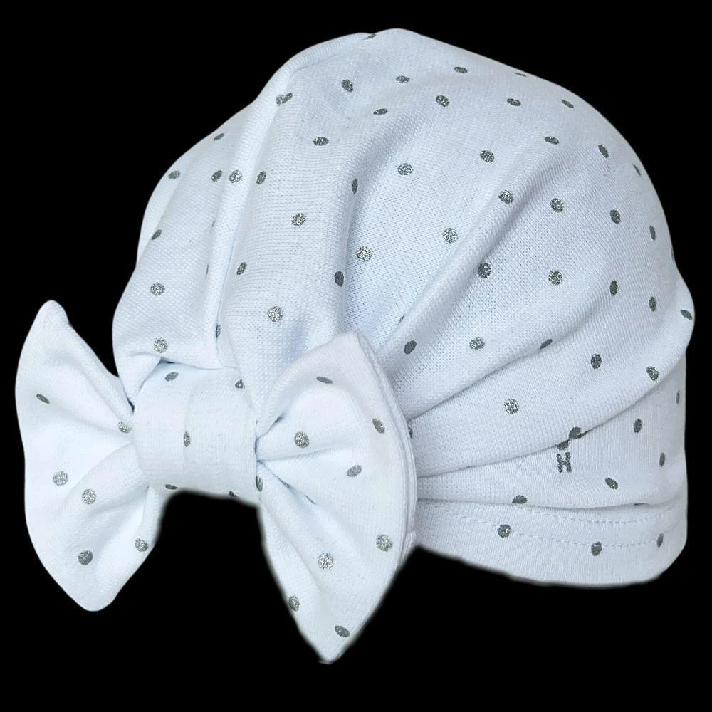 Dívčí nasazovací řasená čepice Bílá puntík s mašlí RDX