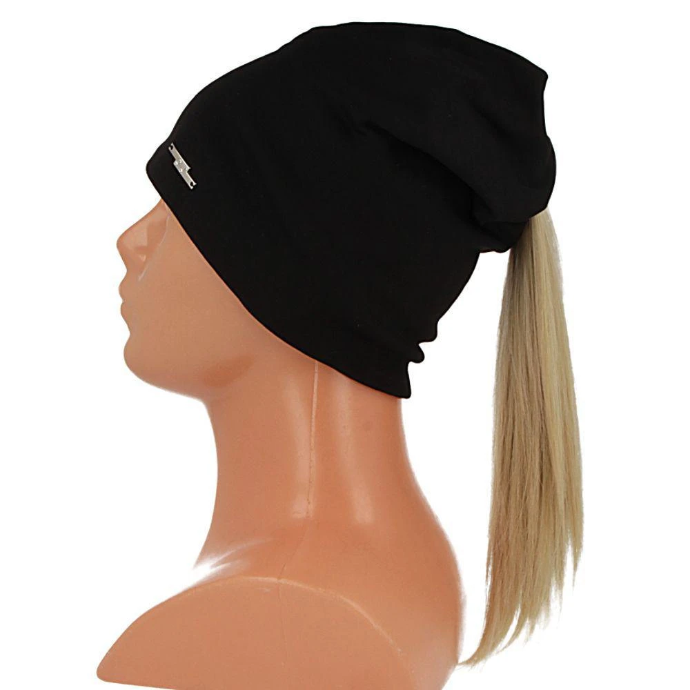 Dívčí spadlá čepice s otvorem na culík černá RDX