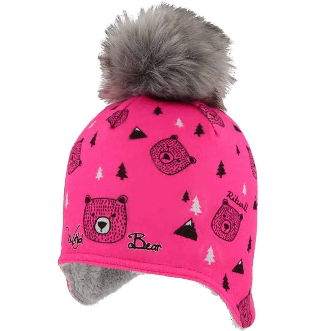 Dívčí vázací čepice s bambulí Medvěd RDX