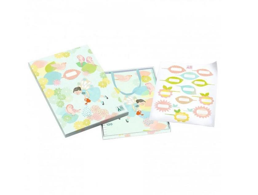 Metr zdobí krásné ilustrace francouzských výtvarníků a děti zabaví umisťování a přemisťování přiložených samolepek, kterými dekoraci dotvoří.
