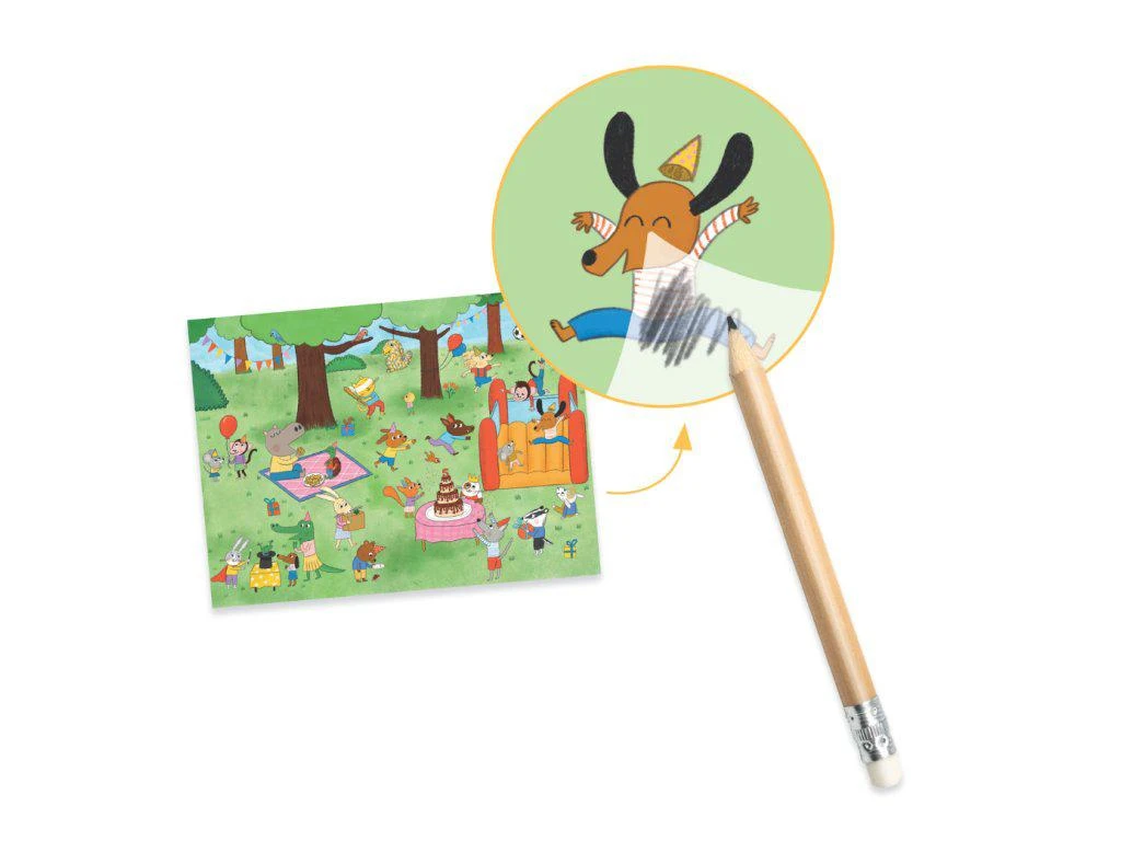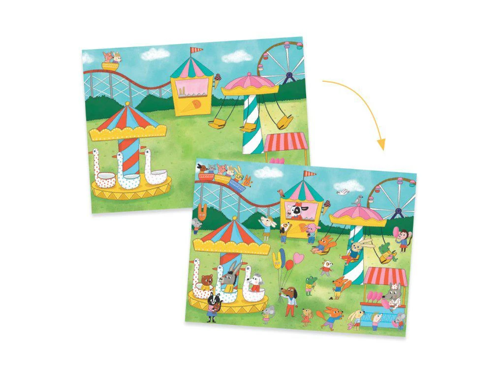 Více než 100 obrázků k přenesení na 3 velká pozadí. Vyrobeno z papíru a lepenky s certifikátem FSC®.
