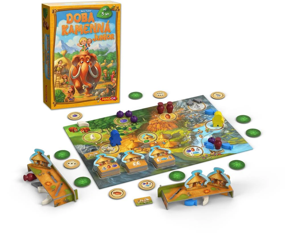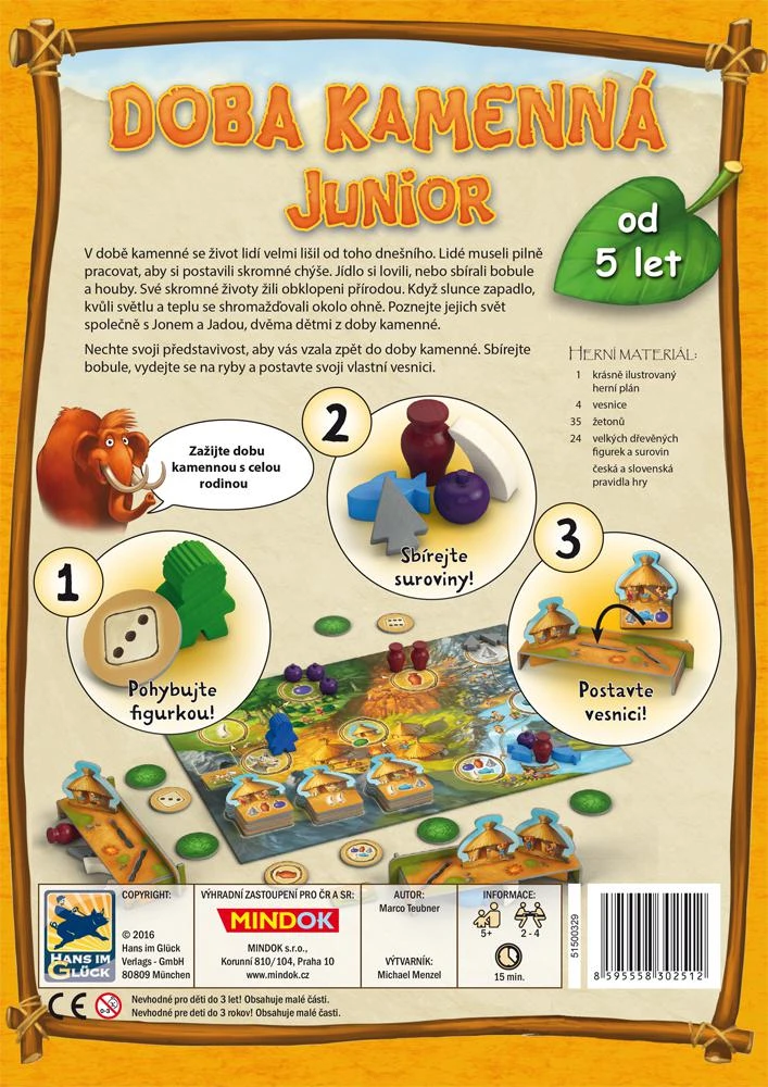 Herní materiál: 1 krásně ilustrovaný herní plán, 4 vesnice, 35 žetonů, 24 velkých dřevěných figurek a surovin, česká a slovenská pravidla hry.
