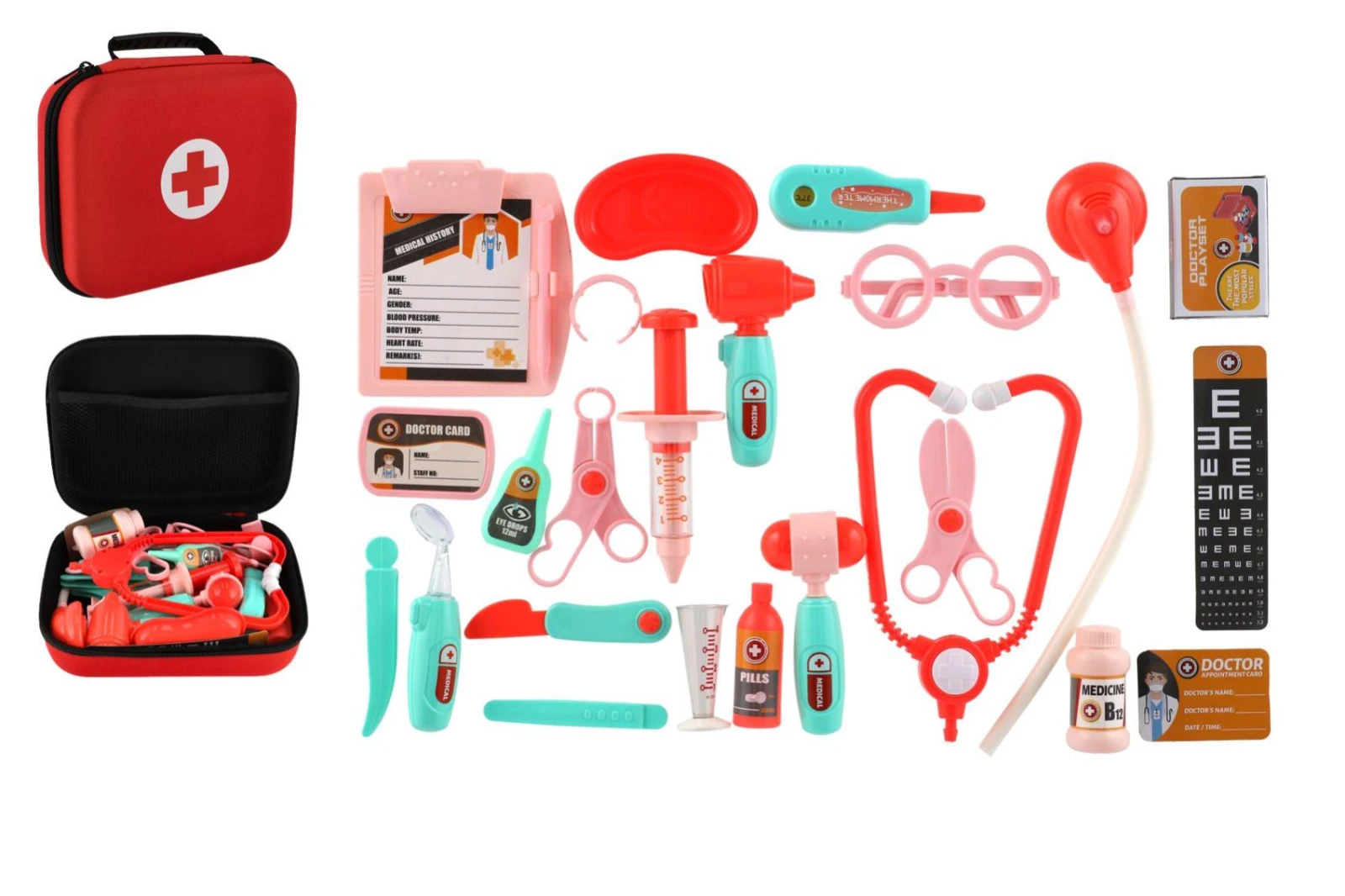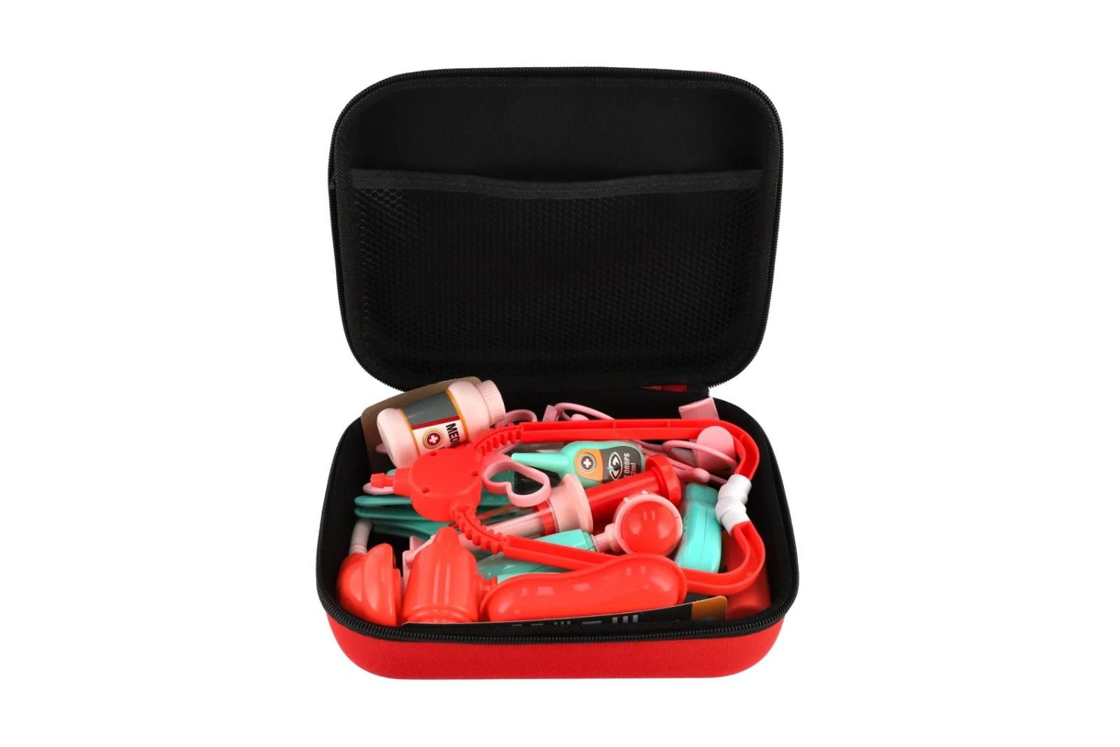 Praktický látkový kufřík ukrývá různé lékařské nástroje a doplňky, se kterými si děti mohou hrát na vyšetření pacientů, ošetření zranění nebo návštěvu ordinace. Hra podporuje dětskou fantazii, rozvíjí sociální dovednosti a pomáhá dětem překonat obavy z návštěvy lékaře.