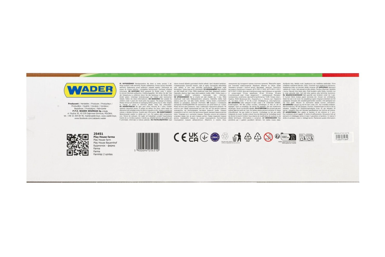 Wader je renomovaná značka specializující se na výrobu plastových hraček pro děti. Historie společnosti sahá do roku 1956, kdy byla založena v Německu. Dnes je Wader předním polským výrobcem plastových hraček s více než 30 lety zkušeností. Společnost nabízí širokou škálu odolných a bezpečných hraček, které podporují kreativitu a rozvoj dětí. Jejich portfolio zahrnuje stavební sady, vozidla, hračky na písek a zahradní náčiní, vše vyrobené z kvalitních materiálů. Všechny produkty splňují normu EN-71 a při jejich výrobě nejsou používány těžké kovy ani ftaláty, v souladu se směrnicí 94/61/EC. Společnost také dbá na šetrnost k životnímu prostředí.