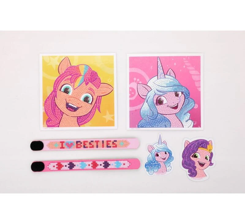 V této sadě najdeš vše 2x, takže můžeš jednoduše tvořit se svým sourozencem nebo kamarádem. Vytvořte si obrázky, náramky a samolepky oblíbených poníků My Little Pony.
