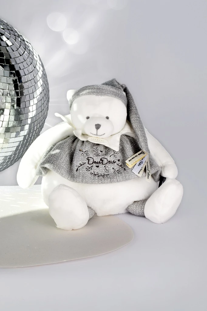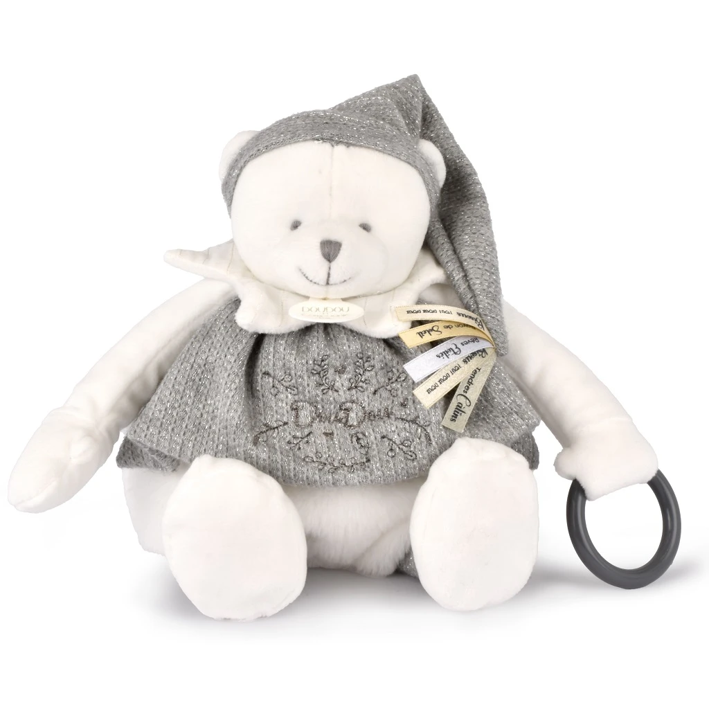 Dárková sada Plyšový lední medvídek s kroužkem 30 cm šedý Doudou