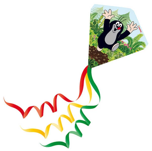 Dětský létající drak s obrázkem Krtečka. Lítající draci patří k podzimu jako padající listí.