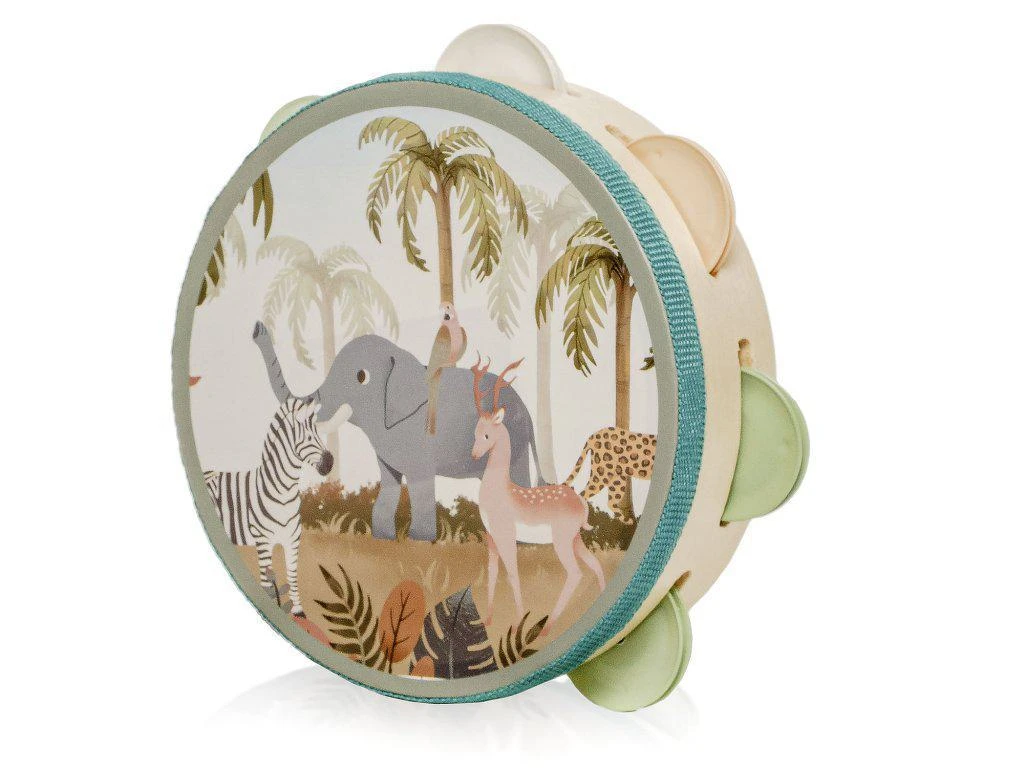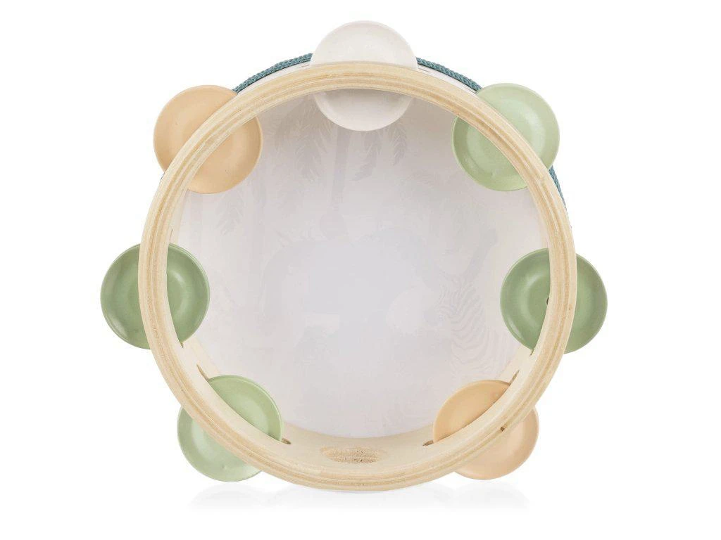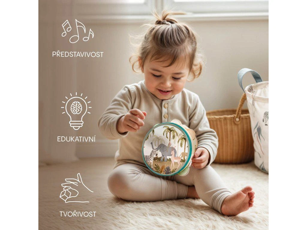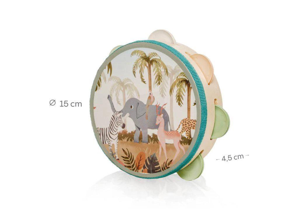 Tamburína je lehká, snadno uchopitelná a bezpečná i pro ty nejmenší. Díky své velikosti ji dítě může snadno držet oběma nebo jednou rukou. Ideální pro hru doma, na cestách i ve skupinových aktivitách.