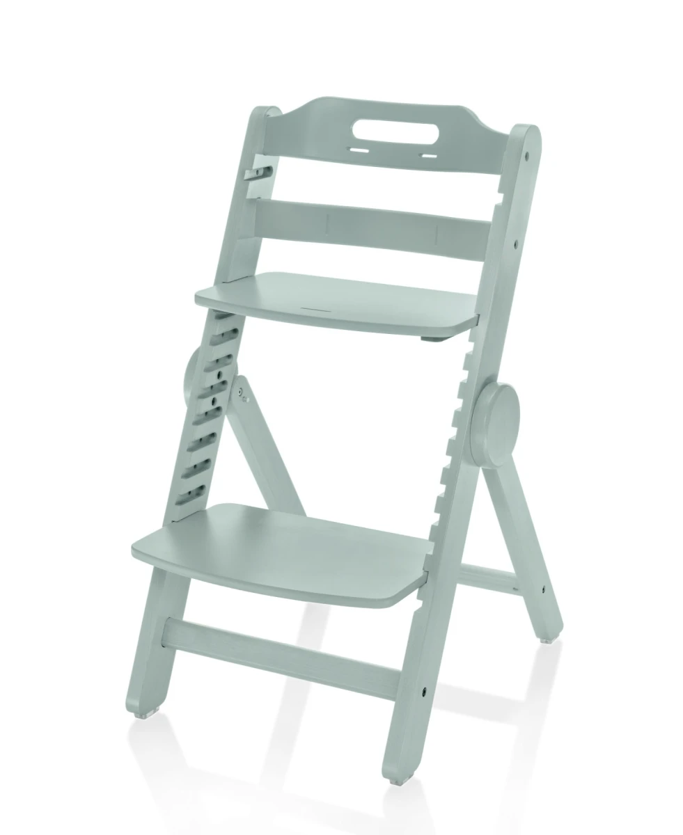Díky inovativnímu systému Clipp & Clapp lze židličku jednoduše přizpůsobit výšce bez potřeby nářadí. Jako jedna z mála dřevěných židliček na trhu lze složit, což díky kompaktním rozměrům po složení umožní snadné skladování a madlo zase usnadní přenášení židličky.