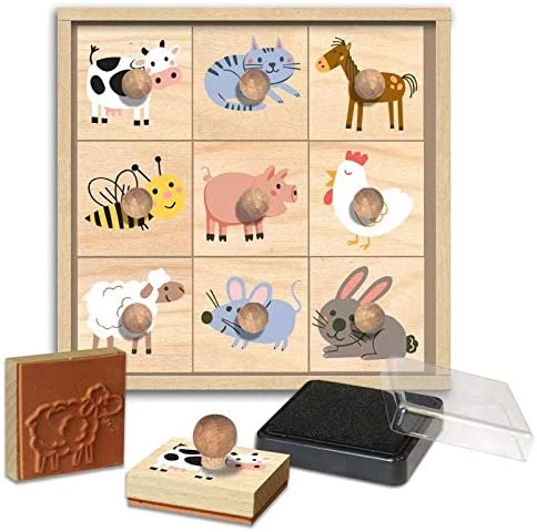 Dřevěná razítka s držákem Farma 9 ks