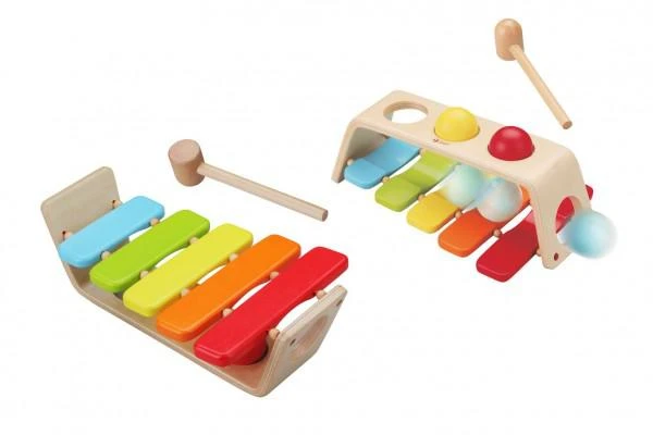Dřevěná zatloukačka/Xylofon 2v1 29x18 cm 12 m+