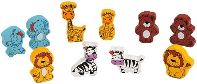 Balení obsahuje 10 kusů zvířátek. Zvířátka: 2x slon, 2x lev, 2x medvěd, 2x žirafa, 2x zebra.