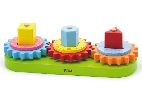 Dřevěné geometrické tvary a ozubená kolečka. Rozměry cca 25 x 8 x 12 cm. Rozměry balení cca 29 x 17 x 12 cm. Věk 18m+