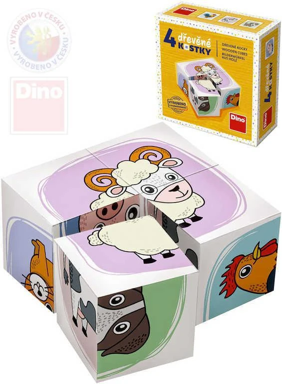 Dřevěné kostky Zvířátka 4 ks