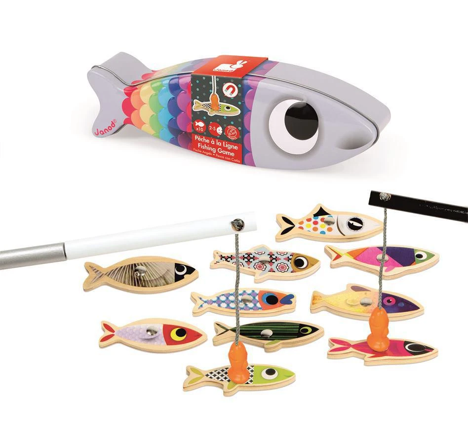 Dřevěné magnetické rybářské udice pro děti Sardinky Janod