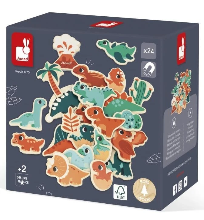 Dřevěné magnetky Dinosauři Dino 24 ks Janod