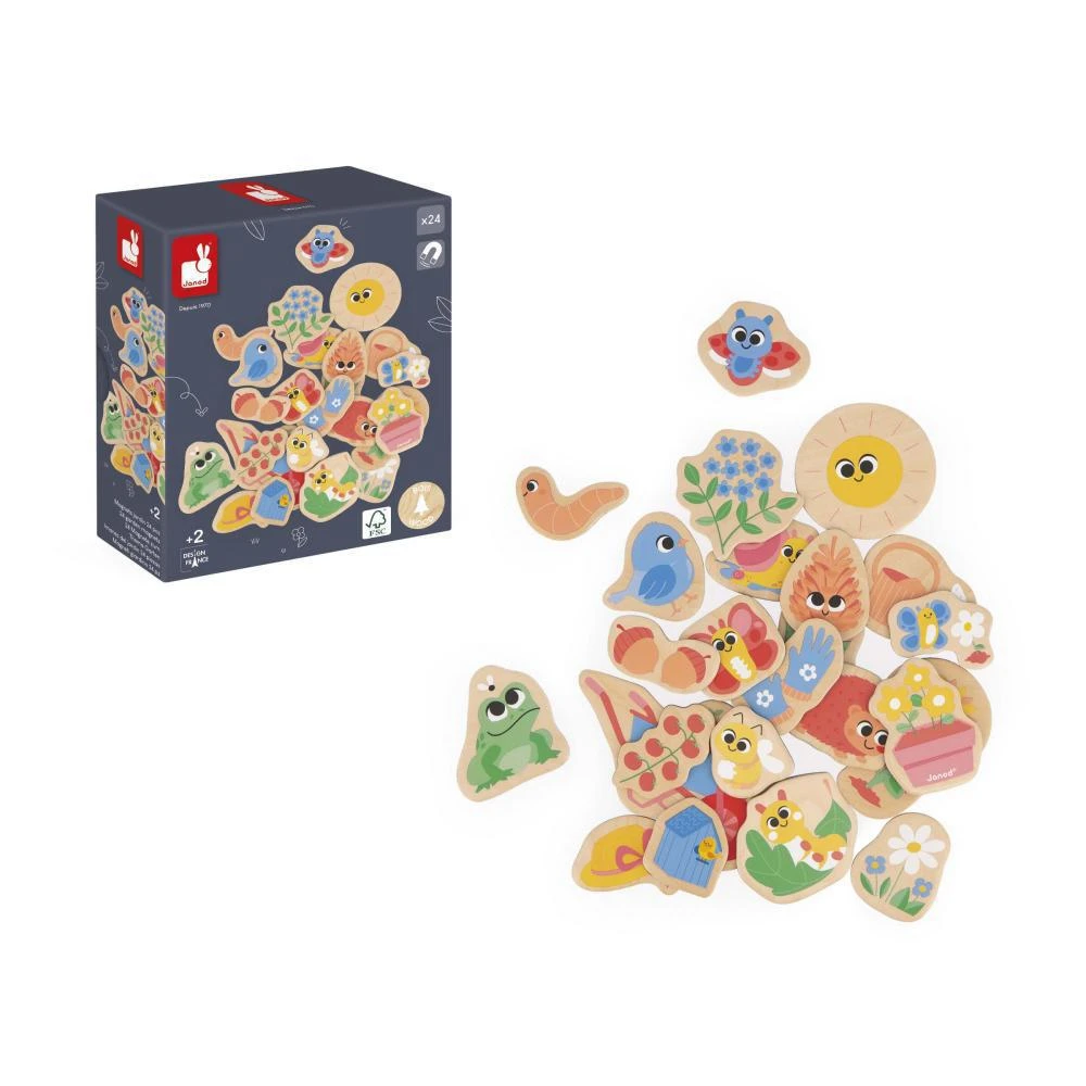 Dřevěné magnetky pro děti Zahrada 24 ks Janod