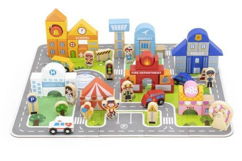 Dřevěné stavebnice - město s podložkou