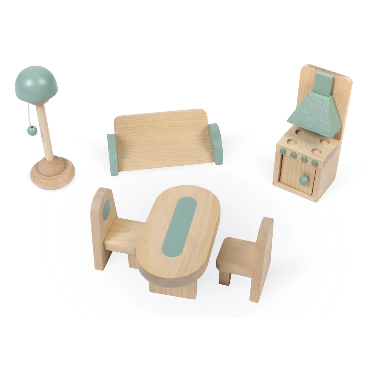 Dřevěný domeček pro panenky s rodinou a nábytkem Janod