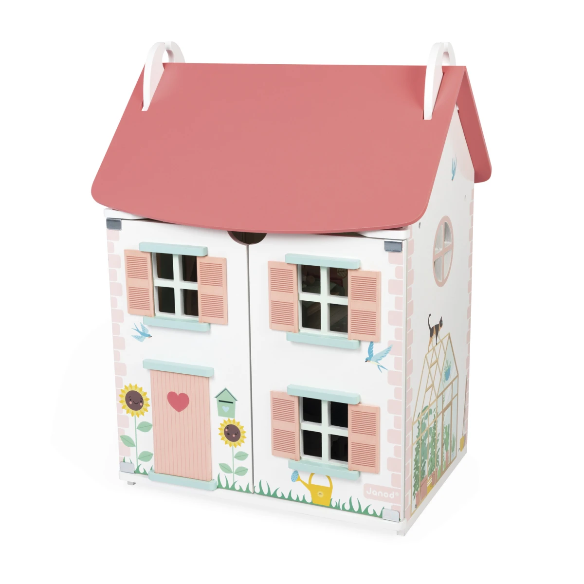Otevřete dveře a objevte každou místnost, obývací pokoj, jídelnu, ložnici... rozložte nábytek, oživte své postavičky... pak vše opět zavřete pro snadné uskladnění. S růžovými kostkami, motýlky a miniaturními stromečky tento domeček vyzařuje jemnou, rozmarnou atmosféru. Praktický a důmyslný domeček se otevírá i přes střechu pro snadný přístup do všech místností. Dveře jsou magnetické a snadno se zavírají jako mávnutím kouzelného proutku.