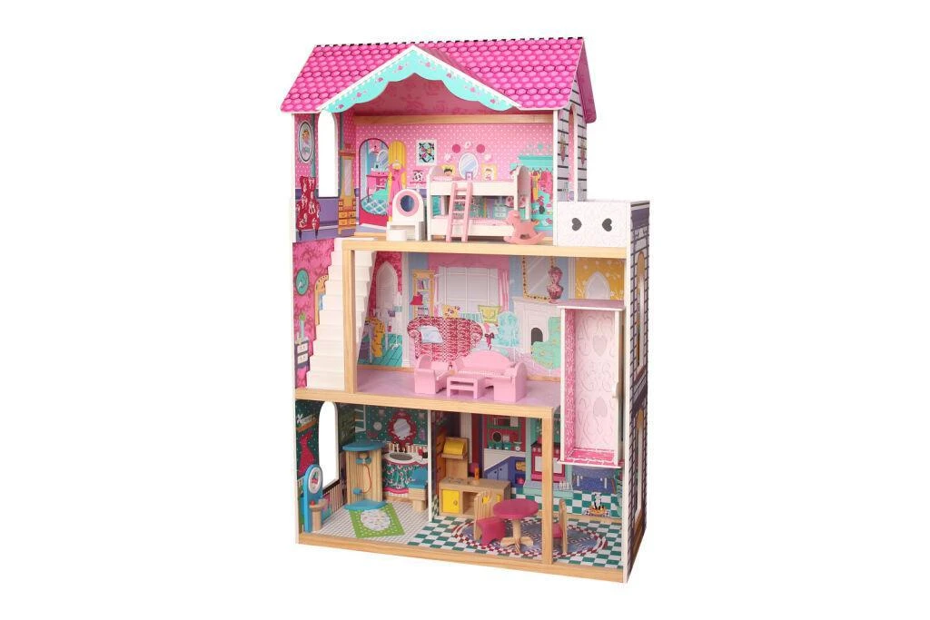 Obsahuje dřevěný nábytek a pohyblivý výtah.