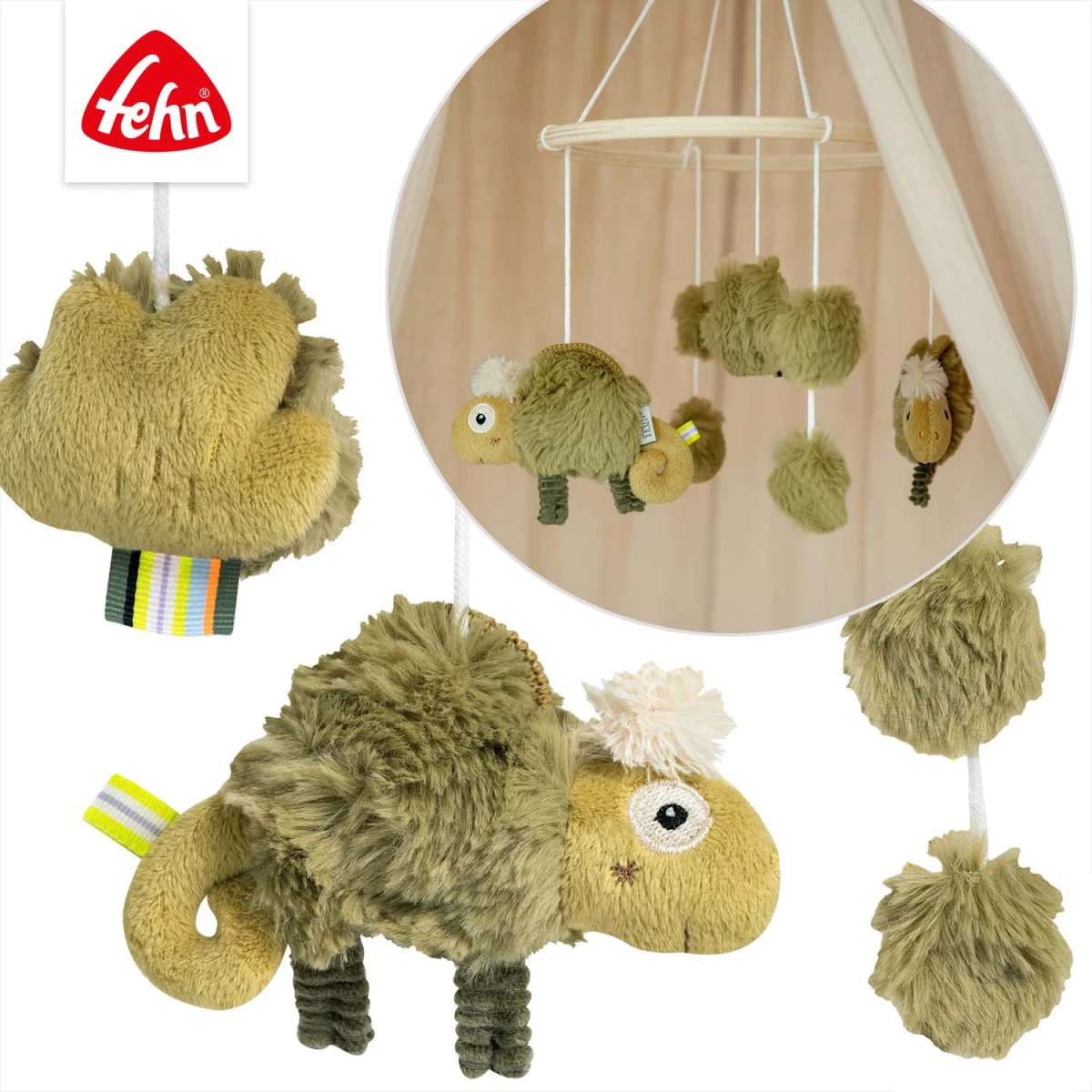 Fehn je německá společnost specializující se na výrobu vysoce kvalitních hraček a doplňků pro kojence a batolata. Od svého založení v roce 1949 se zaměřuje na inovativní produkty, které podporují vývoj dítěte a splňují nejvyšší standardy kvality a bezpečnosti. Sortiment společnosti Fehn zahrnuje širokou škálu produktů, jako jsou hudební kolotoče, 3D deky, aktivity hračky, plyšové hračky, muchláčky, látkové knížky, chrastítka, spirály, hračky do vody a mnoho dalších. Tyto výrobky jsou navrženy s důrazem na detail a vyrobeny z bezpečných materiálů, aby nejen bavily, ale také podporovaly motorický, smyslový a kognitivní rozvoj dítěte.