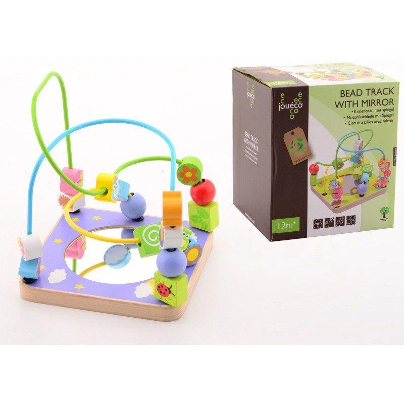 Dřevěný labyrint se zrcátkem a korálky Jouéco 12m+